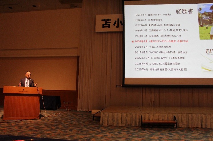 講演会では株式会社FJコンポジット 代表取締役 津島 栄樹 氏から「ベンチャー起業から北海道進出、今日まで」をテーマにご講演いただきました。