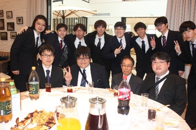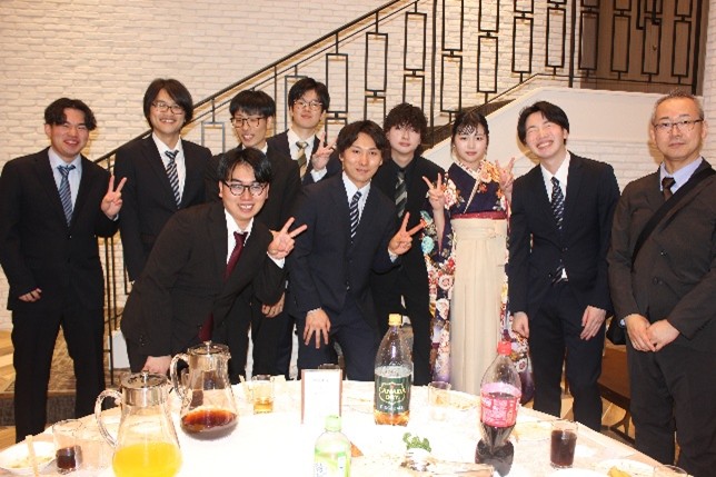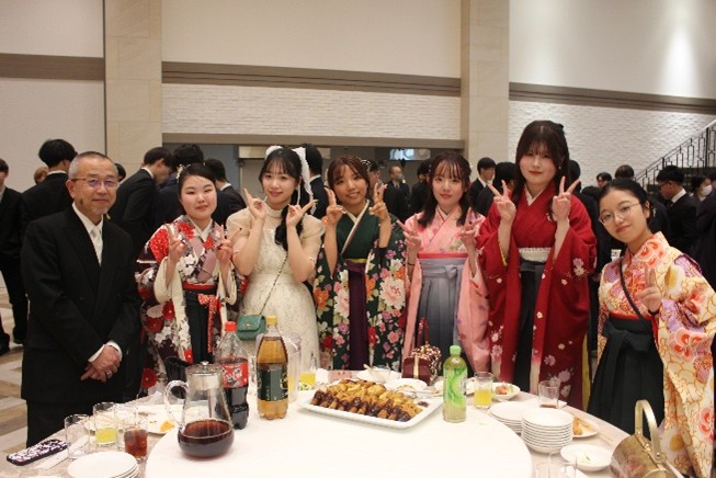 その後、会場をアールベルアンジェに移し、卒業祝賀会が開催されました。祝賀会では、苫小牧市長の金澤俊様より、「今後さまざまなことに積極的に挑戦してほしい」とのご挨拶がありました。続いて歓談の時間となり、参加者は高専での思い出を語り合いながら、和やかなひとときを過ごしました。