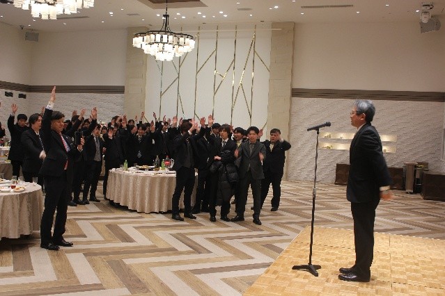 最後は、八田茂実総務主事による万歳三唱で締めくくられ、盛会のうちに終了しました。