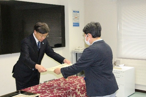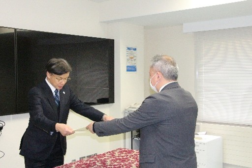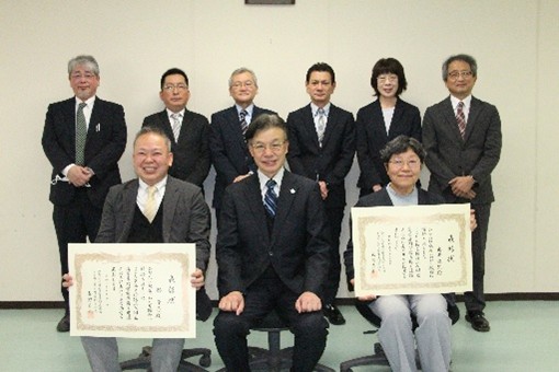 令和8年3月31日(火)、本校会議室にて令和7年度退職時永年勤続表彰式を執り行いました。 今年度は、創造工学科応用化学・生物系 奥田 弥生 准教授及び技術教育支援センター 郡 貴志 技術専門職員が在職30年の永年勤続者として表彰を受けました。表彰式では、表彰状が授与された後、長野校長から祝辞と長年の勤続に対する感謝及び今後の活躍に対する期待が述べられました。