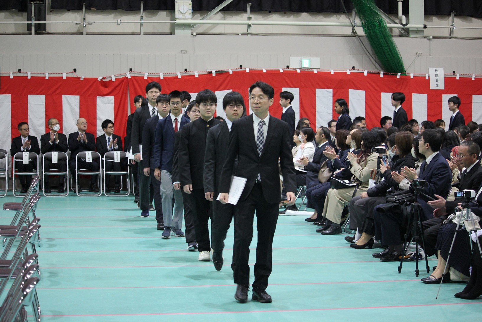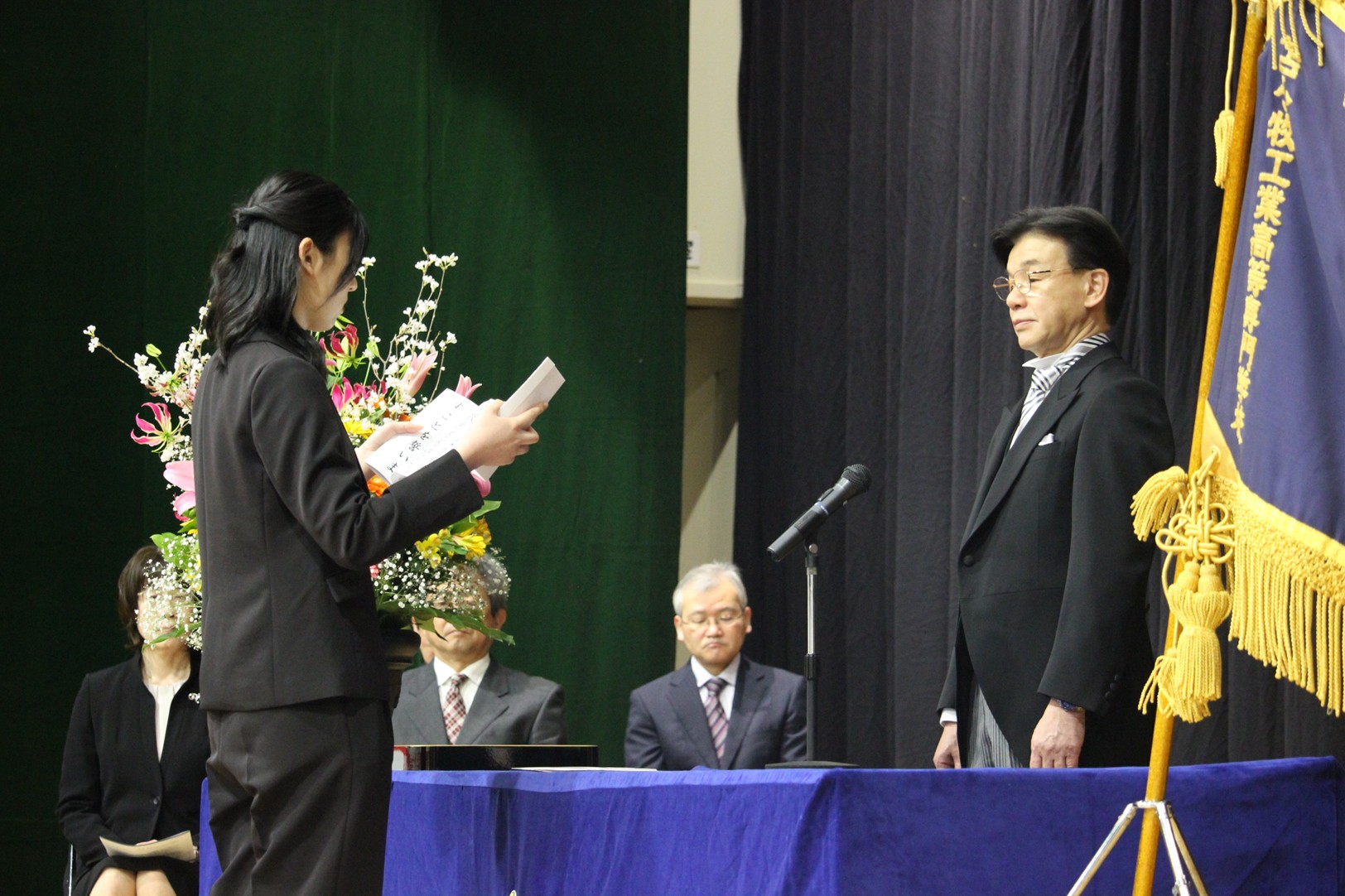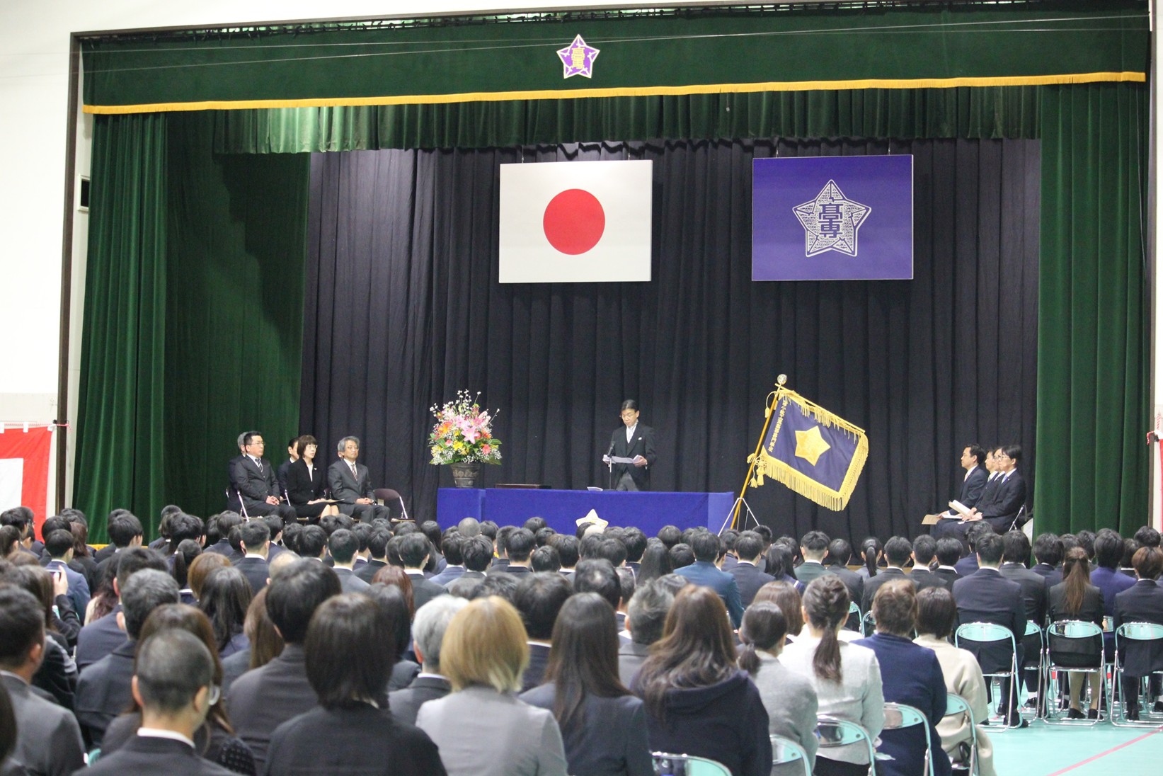 令和8年4月7日(火)、本校第二体育館において令和8年度入学式を挙行しました。 今年度の新入生は、創造工学科の第1学年172名、第3学年に編入学する留学生4名、専攻科に入学する21名の合わせて197名となりました。保護者の見守るなか、長野校長から入学許可がなされ、続いて本科入学生代表及び専攻科入学生代表による宣誓の後、長野校長の式辞、金澤苫小牧市長及び工藤苫小牧高専後援会会長による祝辞などがありました。