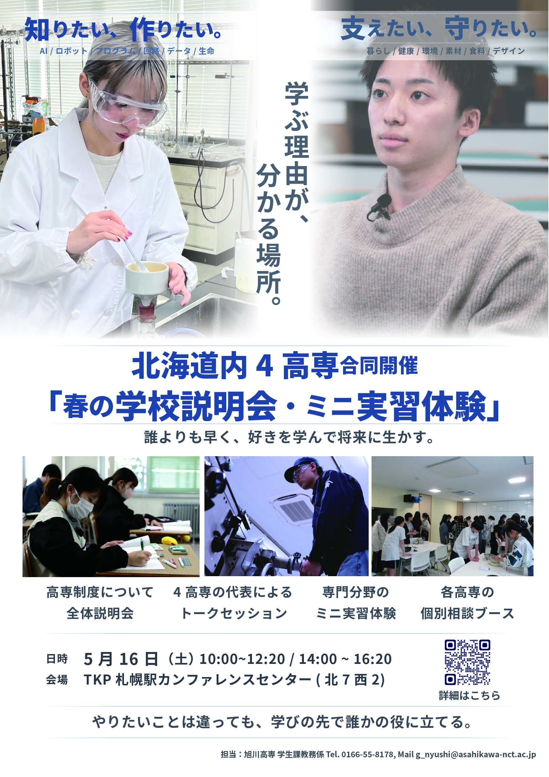 旭川高専HP>イベント>北海道内4高専合同 春の学校説明会・ミニ実習体験 参加申込受付中(5月10日まで)